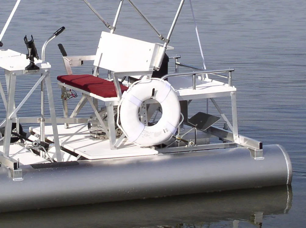 This ladder can be added to any 15" Aqua Cycle® model new or old. It is a great addition that can be bolted on in only minutes. The ladder kit includes, boarding platform with 3 step stainless steel telescoping ladder, one stainless steel grab handle and additional non slip pad to be added to pontoon.