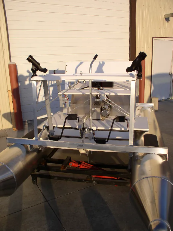 American Pleasure Products has developed a motor drive unit for it's pontoon paddle boat to power the paddlewheel assembly presently used to propel the Aqua Cycle®.